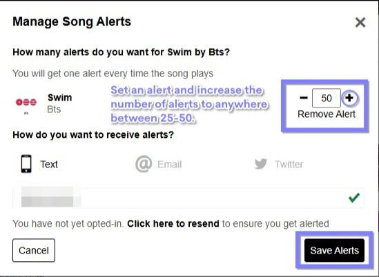 3. Go to "Song Alerts" search bar and type in BTS SWIM.